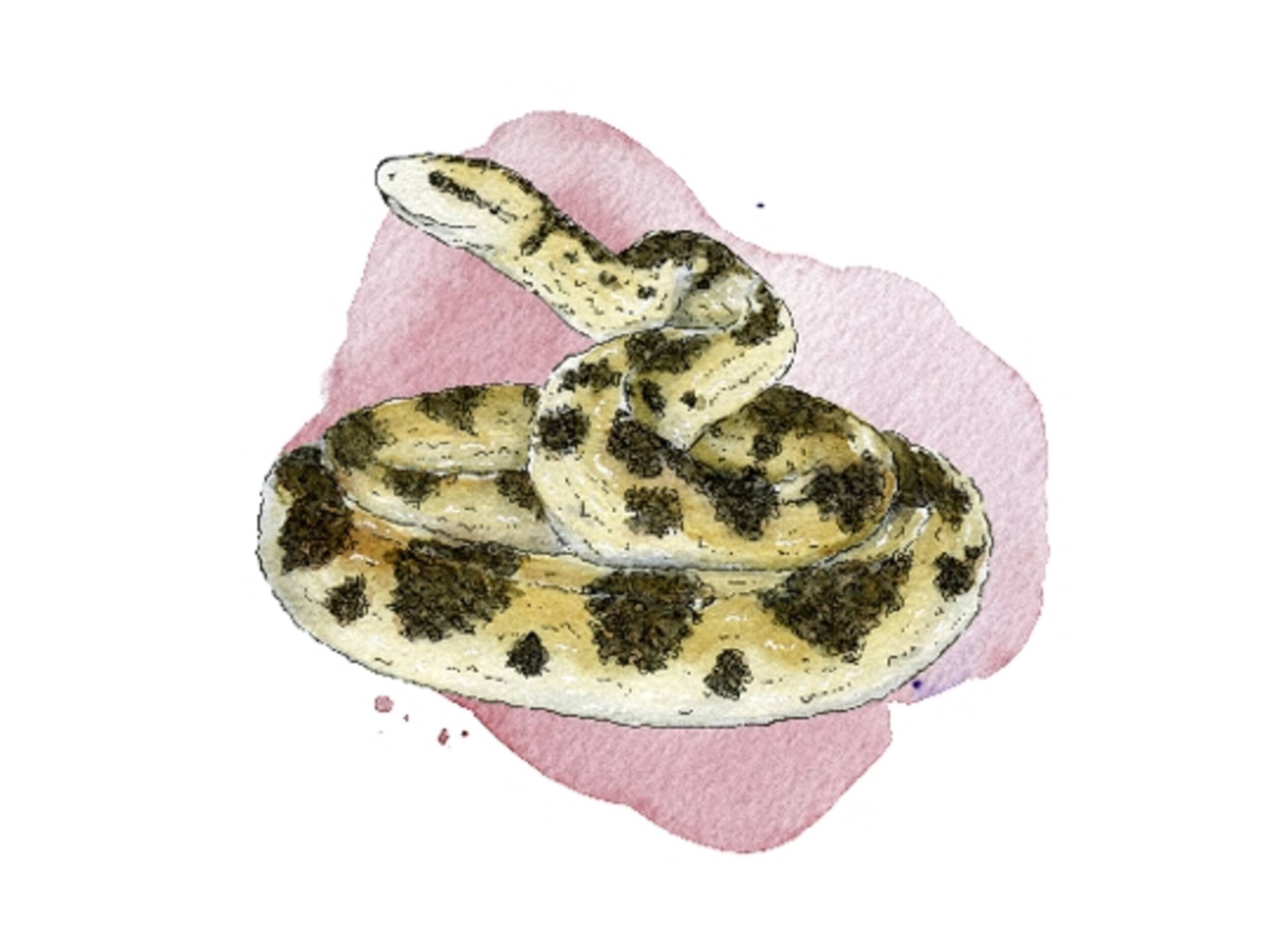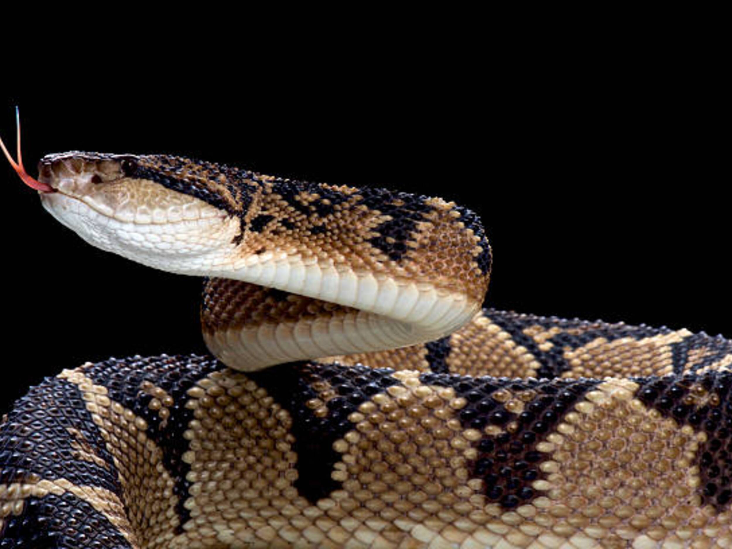 Lebensweise: Der scheue Bodenbewohner ist vorwiegend dämmerungs- und nachtaktiv und ernährt sich hauptsächlich von Nagetieren. Der Buschmeister zeigt ein Brutpflegeverhalten, bei dem er sein aus 10 bis 12 Eiern bestehendes Gelege bewacht.
