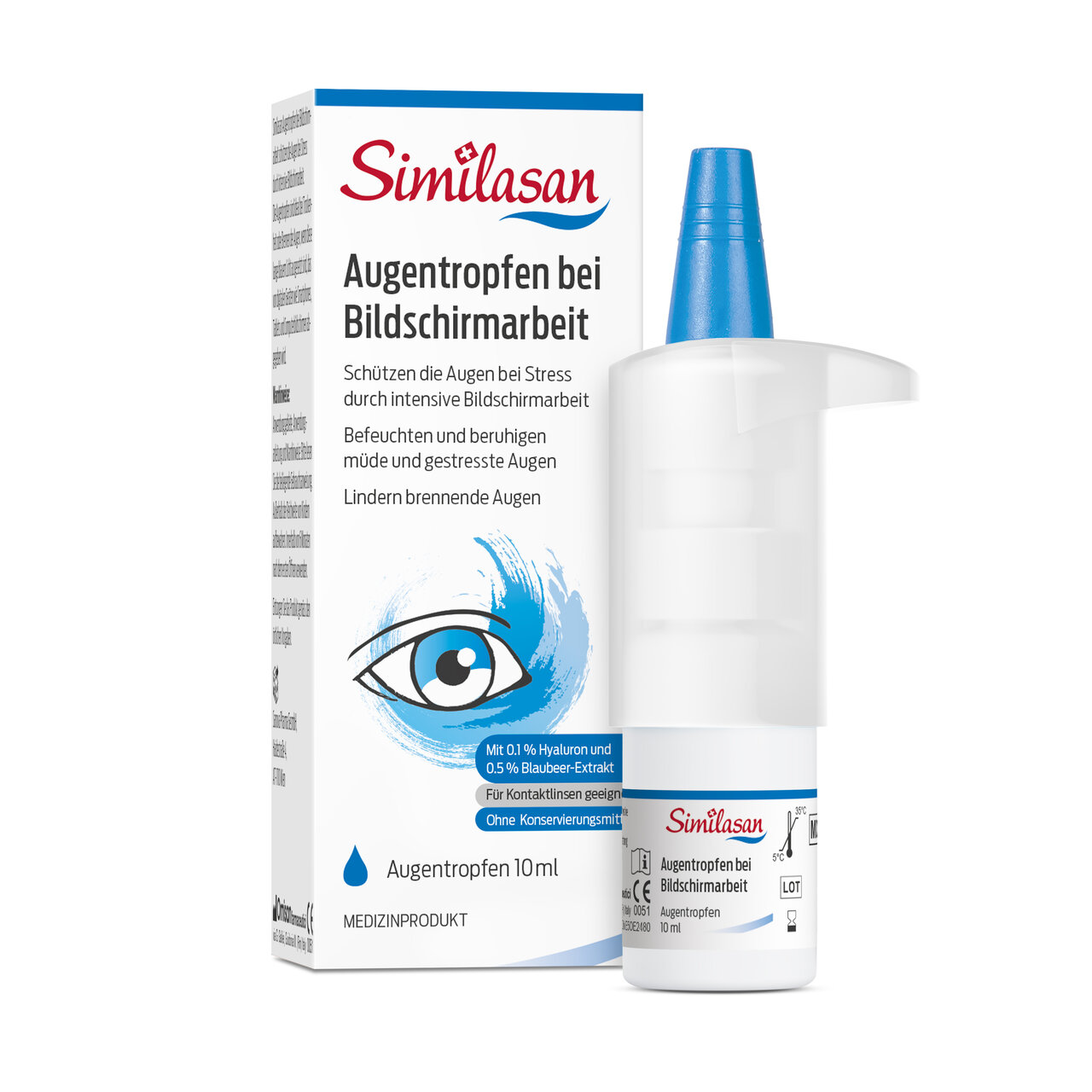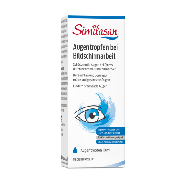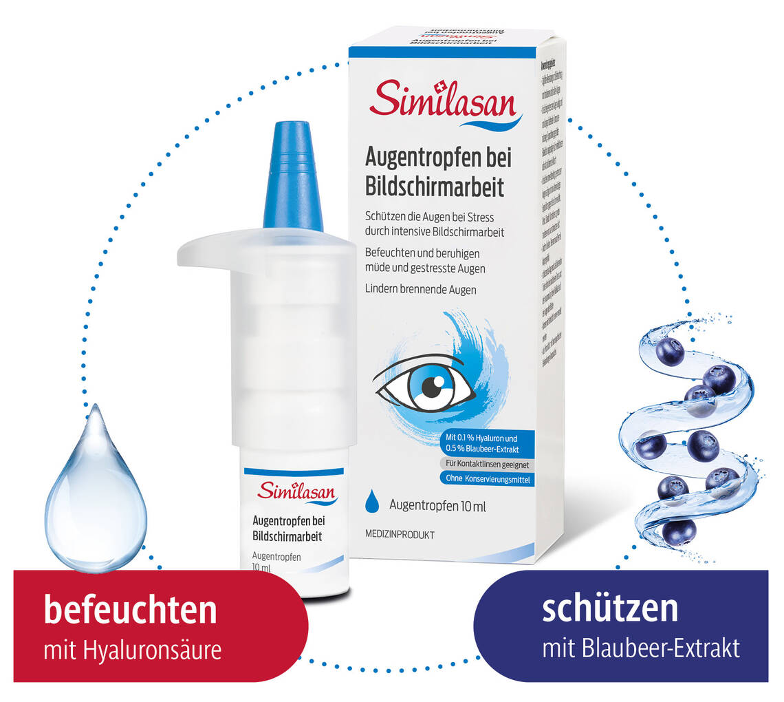 Die Similasan Augentropfen bei Bildschirmarbeit bieten dank einzigartigem Blaubeer-Extrakt Schutz und Pflege für gestresste Augen durch langanhaltende Computernutzung und Blaulicht-Exposition. Täglich anwendbar lindern sie juckende, brennende Augen und das Fremdkörpergefühl, während sie den Tränenfilm stabilisieren und befeuchten.