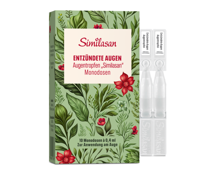 Bei entzündeten Augen können Similasan Augentropfen angewendet werden. Die Wirkstoffe Belladonna, Euphrasia und Hepar sulfuris tragen alle zur Heilung von entzündeten Augen bei. Belladonna wird eingesetzt, wenn plötzliche Entzündungen mit Hitze, Rötung und Brennen auftaucht. Euphrasia ist das Augenmittel schlechthin und unterstützt ebenfalls bei Entzündungen und Rötung und Brennen der Bindehaut, Lider und Lidränder. Hepar sulfuris kommt bei chronischen Entzündungen mit eitrigen Absonderungen zum Einsatz.