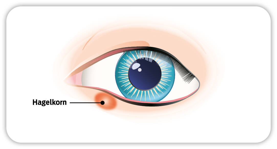 Das Hagelkorn (Chalazion) ist eine harmlose, chronische Entzündung einer fettproduzierenden Lidranddrüse (Meibom-Drüse) in einem der beiden Augenlider. Sie wird durch eine Verstopfung des Ausführungsgangs der Drüse ausgelöst. Die Schwellung sitzt – anders als beim Gerstenkorn – tiefer im Lid und wird in der Regel auf der Innenseite des Lids durch eine Vorwölbung sichtbar. Grundsätzlich kann jeder Mensch ein Hagelkorn entwickeln. Je nach Lage und Grösse kann auch das Hagelkorn sehr unangenehm und schmerzhaft sein. Kleinere Hagelkörner bilden sich in der Regel von allein zurück. Grössere werden vom Augenarzt mit einer örtlichen Betäubung operativ entfernt. Im Gegensatz zu einem Gerstenkorn, das zu einer eitrigen Entzündung im Auge führen kann, ist das Hagelkorn häufig nicht schmerzhaft.